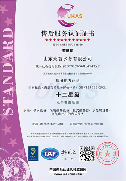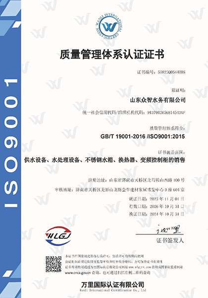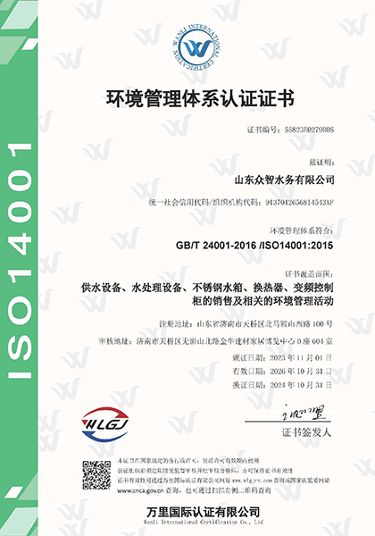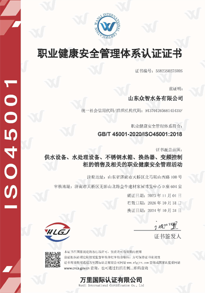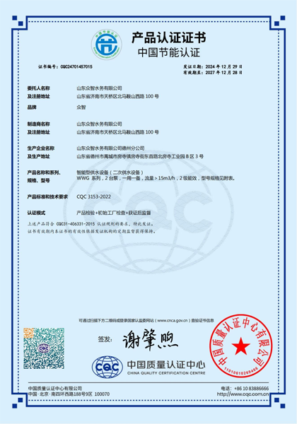 山東眾智水務(wù)有限公司成立于2011年,注冊(cè)于山東省濟(jì)南市。是一家集科研開(kāi)發(fā)、設(shè)計(jì)、制造、銷(xiāo)售、安裝、調(diào)試服務(wù)為一體的綜合性企業(yè),榮獲國(guó)家級(jí)高新技術(shù)企業(yè)、科技型中小企業(yè)、專(zhuān)精特新中小企業(yè)。多年來(lái)致力于給排水、暖通設(shè)備、水處理設(shè)備及行業(yè)物聯(lián)網(wǎng)的研發(fā)和生產(chǎn)。公司具有完善的設(shè)計(jì)、開(kāi)發(fā)、檢測(cè)和產(chǎn)品制造能力,通過(guò)了三體系認(rèn)證、CQC國(guó)家強(qiáng)制性產(chǎn)品認(rèn)證、涉及飲用水衛(wèi)生安全產(chǎn)品衛(wèi)生許可批件、二次供水設(shè)備中國(guó)節(jié)能產(chǎn)品認(rèn)證、二級(jí)機(jī)電安裝資質(zhì)、AAA級(jí)資信等級(jí)認(rèn)證、十二星售后服務(wù)認(rèn)證等多項(xiàng)行業(yè)內(nèi)認(rèn)證證書(shū)。